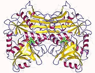 ![]() Crystallographic structure of branched-chain-amino-acid aminotransferase from Mycobacterium smegmatis[1] | |||||||