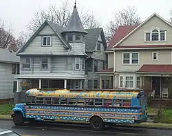 Peter and Elka Schumann founded the Bread & Puppet Theater in 1963 in New York City.[5] It was active during the Vietnam War in anti-war protests, primarily in New York City, prompting Time reviewer T.E. Kalem to remark in 1971, "This virtual dumb show is as contemporary as tomorrow's bombing raid."[6] A Sicilian puppet show had inspired Schumann, and Bread & Puppet inspired other groups across the continent, including Gary Botting's Edmonton-based People & Puppets Incorporated, which in the early 1970s also used effigies yards-high to depict political themes and social commentary in radical street theater.[7] In 1970 the theater moved to Vermont, first to Goddard College in Plainfield, and then to a farm in Glover where it remains. The farm is home to a cow, several pigs, chickens, and puppeteers, as well as indoor and outdoor performance spaces, a printshop, a store, and a large museum showcasing over four decades of the company's work. Bread & Puppet has received National Endowment for the Arts grants, awards from the Puppeteers of America, and other organizations.