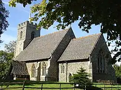 The parish church of St Mary the Virgin dates from the 14th century. It contains a tomb of earlier date, likely the 1200s, on which have been carved the name Piers Shonks and the date, 1086. By tradition, Shonks was a local lord who killed a dragon or, less commonly, a giant. The emblems of the Four Evangelists – angel, eagle, lion, and bull – have been carved around a dragon's mouth.[1][2] The church is part of a benefice with Anstey, Brent Pelham, Hormead, Meesden and Wyddial.[3]