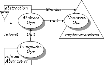 ) is not implemented as usual in a single inheritance hierarchy. Instead, there is one hierarchy for an abstraction (Abstraction