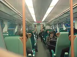 From early 2015, Eversholt commissioned Alstom to perform an extensive £36.1m overhaul of the entire fleet to improve passenger conditions, which included the retrofitting of full air conditioning, at-seat charging points, provision for wi-fi, passenger counting equipment, cycle spaces, LED lighting and CCTV in the saloons, and an upgraded CCTV system for driver-only operation.[8][9][10] Improvements were also made to the reliability of the passenger doors, and the original Tightlock couplings were replaced with Scharfenberg-type automatic couplers manufactured by Voith, allowing Class 334 units to rescue and be rescued by Class 380 units. The overhaul process was completed in 2017.
