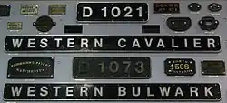 ![]() | D1023 | Western Fusilier | BR Swindon 23.09.63 | Maroon Rail Blue | 28/02/1977 | Preserved as part of the national collection by the NRM | Hauled the Western Tribute Railtour on 26/02/77 (with D1013); the last Western-hauled train on BR.[16] |