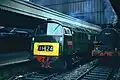 ![]() | D1037 | Western Empress | BR Crewe 31.08.62 | Brunswick Green[14] Maroon Rail Blue | 05/1976 | Scrapped 16.02.77 BREL Swindon | |