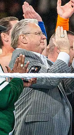 Bruce Prichard (born March 7, 1963) is an American professional wrestling executive, booker, and producer and a former manager, commentator, and occasional professional wrestler who works for WWE as Executive Director - CWT. In addition to his corporate roles with WWE, Prichard has also appeared as an on-screen character under the ring name Brother Love. As Brother Love, Prichard was the original manager of The Undertaker, and hosted a talk show segment, The Brother Love Show.[3]