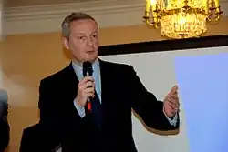 From 2007 to 2008, he was a member of the National Assembly of France, representing Eure's 1st constituency.[4][5] After becoming a political advisor to the Union for a Popular Movement (UMP), Le Maire was appointed Secretary of State in charge of European Affairs, replacing Jean-Pierre Jouyet, in December 2008, serving until 2009.[1][2][13]