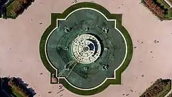 The fountain area has been called Chicago's front door, since it is located in the center of Grant Park, the city's front yard near the intersection of Columbus Drive and Ida B. Wells Drive. The fountain itself represents Lake Michigan, with four sets of sea horses (two per set) symbolizing the four states—Illinois, Wisconsin, Michigan and Indiana—that border the lake. The fountain was designed by beaux arts architect Edward H. Bennett. The statues were created by the French sculptor Marcel F. Loyau. The design of the fountain was inspired by the Bassin de Latone and modeled after Latona Fountain at Versailles.