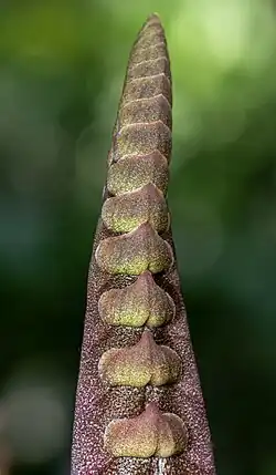 Media related to Bulbophyllum purpureorhachis at Wikimedia Commons