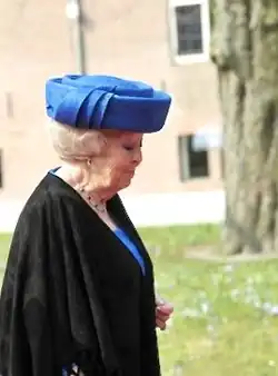 Beatrix of the Netherlands wore a blue bumper brim design in 2013 during a visit to Amsterdam by President Putin
