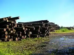By the late 19th and early 20th centuries, the timber industry was a cornerstone of Bydgoszcz's economy.[2] This was fueled by the city's strategic geographic and transport position, as well as growing trade relations between the German Empire and Russia. Timber was sourced from surrounding forests and rafted down the Brda from the Tuchola Forest.[2] The Vistula river served as the primary route, transporting timber, mainly pine logs suitable for construction, from the Congress Poland, Galicia, Belarus, Lithuania, and Ukraine, facilitated by German merchants. Nearly all timber transport relied on waterways, as rail transport was uneconomical.[2]