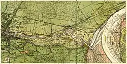 The increasing shipping traffic and the need to store large timber quantities awaiting rafting through the Bydgoszcz Canal necessitated a dedicated basin to stabilize the Brda's water levels. In 1875, the Bromberger Hafen-Aktiengesellschaft was established, comprising timber merchants, sawmill owners, and raft operators.[3] Timber from Galicia and Congress Poland arrived at Brdyujście in autumn. Many rafts remained on the Vistula between Bydgoszcz and Toruń over winter, where ice and high water often broke them apart, carrying them to Gdańsk and causing losses. To mitigate this, a timber port was proposed at the Brda-Vistula confluence, designed and overseen by Garbe, head of the Bydgoszcz Waterways Inspection.[3] Construction took place from 1876 to 1879, between Brdyujście and the Bydgoszcz City Lock. Two locks, two weirs, and a 50-hectare basin, known as the Timber Port or Bydgoszcz Port, were built.[3]
