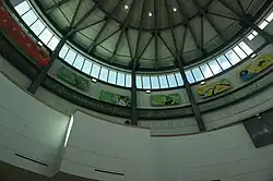The interior of the museum has windows to allow for light.[5] The building’s design is in the spiral shape of a nautilus shell that reflects math concepts like the Fibonacci sequence and the golden ratio.[5][8]
