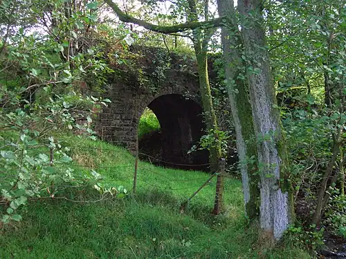 This basic halt opened in 1927[3] or on 24 September 1928[4] and closed on 3 April 1950.[3][4] The nearby miners’ row was owned by the Cairntable Coal Co. and provided homes for workers at their nearby colliery.[5][6]