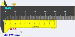 Calipers often have a "zero point error": meaning that the calipers do not read 0.000 cm when the jaws are closed. The zero point error must always be subtracted from the primary reading. Let us assume these calipers have a zero-point error of 0.013 cm. This would give us a length reading of 2.462 cm.