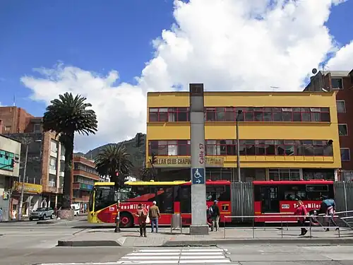 The station is named Calle 57 due to its proximity to that arterial route. It serves the San Luis and Chapinero neighborhoods.