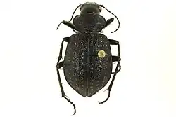 Calosoma tepidum, the lukewarm beautiful black searcher, is a species of ground beetle in the subfamily Carabinae.[1] It was described by John Lawrence LeConte in 1851.[1] This species is found in British Columbia, Arizona, California, Colorado, Idaho, Montana, North Dakota, Nebraska, Nevada, Oregon, Utah, Washington and Wyoming, where it inhabits areas with open dry ground and sparse low vegetation.