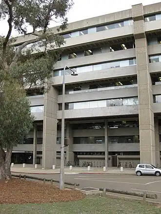 It was built during the second decade of the expansion of Canberra under the National Capital Development Commission, an authority that oversaw the construction of very large office complexes and other buildings in the 1970s that are amongst the most dramatic examples of the Brutalist style in Australia, buildings that displayed the bold sculptural and structural possibilities of concrete. These include John Andrew's Cameron Offices, Belconnen, 1970-76 (partly demolished), and his Callam Offices in Woden (1977–81), the Canberra School of Music by Daryl Jackson and Evan Walker (1970–76), the Edmund Barton Building by Harry Seidler (1970–74), and the High Court (1975-1980) and the National Gallery of Australia (1973-1982) both by Edwards Madigan Torzillo & Briggs. The Campbell Park Offices is the least known of this group due to its isolated location, and is one which is "more rugged and uncompromising".[6]