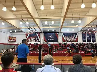 The Pritchard Gymnasium is an indoor multi-purpose gymnasium that is currently the site of home games for Stony Brook's volleyball team. It opened in 1967 and currently seats 1,700 with 20,000 square feet of space.[90] From 1967 to 1990, it was the home venue for Stony Brook's men's and women's basketball teams until the opening of the Stony Brook University Arena.[79] During the renovation of the arena, Stony Brook played its home games at Pritchard Gymnasium again from 2008 to 2014.[91] Pritchard Gymnasium was known for giving Stony Brook a large home-field advantage, with its men's basketball team going 37–3 at home in Pritchard from 2011 to 2014.[92] It underwent a $1.5 million renovation in 2008 to upgrade the seating, add a new scoreboard and refinish the hardwood floor. Pritchard Gymnasium was the site of many historical concerts at Stony Brook University, with musicians and bands such as Jimi Hendrix, The Clash, Siouxsie and the Banshees, Ramones, Red Hot Chili Peppers and The Notorious B.I.G. playing shows in the venue.[93]