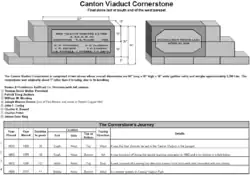 The dedication stone's capstone, in the south end of the west parapet was the last stone to be laid in the viaduct.