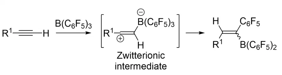 - ^ a b Bismuto, A.; Thomas, S. P.; Duarte, F; Cowley, M. J. (2012). "Characterization of the Zwitterionic Intermediate in 1,1-Carboboration of Alkynes". Chemical Communications. 48 (13): 1839–1850. doi:10.1039/C1CC15628D. PMID 22116402.