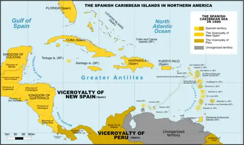 It includes the Lucayan Archipelago, Greater Antilles, and Lesser Antilles of the West Indies; the Quintana Roo islands and Belizean islands of the Yucatán Peninsula; and the Bay Islands, Miskito Cays, Archipelago of San Andrés, Providencia, and Santa Catalina, Corn Islands, and San Blas Islands of Central America. It also includes the coastal areas on the continental mainland of the Americas bordering the region from the Yucatán Peninsula in North America through Central America to the Guianas in South America.[5][6]