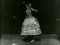 Born in Almería, Andalusia, Spain, Carmencita took dancing lessons in Malaga and first danced professionally at Malaga's Cervantes Theatre in 1880.[2][3] In 1882 she toured Spain and later traveled to Paris and Portugal. She returned to Paris during the Exposition Universelle (1889) and danced at the Nouveau Cirque where theatrical agent Bolossy Kiralfy saw her performance and subsequently induced her to come to the United States under his management. She debuted in New York on August 17, 1889, dancing in the ballet of "Antiope."[4] Her association with Kiralfy ended in early 1890,[5] and she rose to fame under the management of John Koster and Albert Bial, who put her in their 23rd Street Concert Hall commencing 10 February 1890. Over the next several years Carmencita performed in major cities across the country. She appeared in Koster & Bial's new Music Hall in November and early December 1894 before selling her possessions and returning to Europe.[6] She performed at the Palace Theatre, London in February 1895[7] and then periodically at the Théâtre des Nouveautés in Paris.[8]