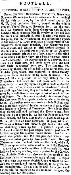 - ^ "Annual Football Competition at Carnarvon". North Wales Express: 7. 30 December 1887.