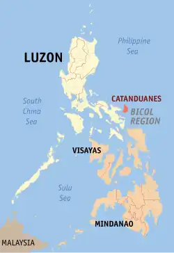 ![]() Location of Catanduanes within the Philippines | |