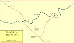 During the construction of the G&SWR main line between Glasgow and Carlisle, that opened in 1850,[note 1] consideration had been given to building a branch to Catrine,[2] but the idea was not pursued.