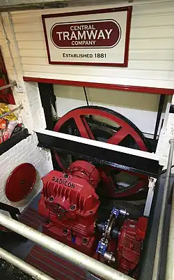 The mechanism in the engine house was unique and used a colliery type indicator and chalk marks on the winch to inform the winding engineer when the cars had arrived at the station.[10] This meant that the winding engineer did not have a view of the track.
