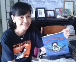 ![]() Chan Eng Heng with her book "Little Turtle Messenger" | |