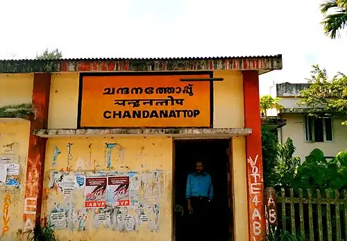 Chandanathoppe railway station (Code:CTPE) or Chandanattop railway station is an 'F-class' halt railway station situated at Kollam–Sengottai branch line of Southern Railway zone, India.[2] It is one among the 25 railway stations in Kollam district.[3][4] The station is partially serving the city of Quilon. Chandanathoppe railway station is coming under the Madurai railway division of the Southern Railway zone, Indian Railways. The nearest major rail head of Chandanathoppe railway station is Kollam Junction railway station.