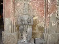 Changdeva temple is situated near Purna river. The temple is built in black rock in the Hemadpanthi architecture style. The people who built this temple used only dove-tailed black rocks and chalk in construction. The walls of the temple are adorned with stone-carved sculptures of women in various graceful poses. They appear wearing Indian attire like Apsaras, probably these women statues on the external walls are of Apsaras. The temple has a stone idol of Changdeva Maharaj in its Garbhagruh. Idols discovered during excavations by the ASI are displayed in the open air near the temple. The temple has its main gate on the North side, with a large mandap in front without a roof. The temple is 10 meters long by 9 meters wide.[4] Mahadeva and Shani Dev temples are located just a few feet away from this temple.[5] This temple is under the custody of the Archaeological department of Aurangabad. It is a protected monument.[6]