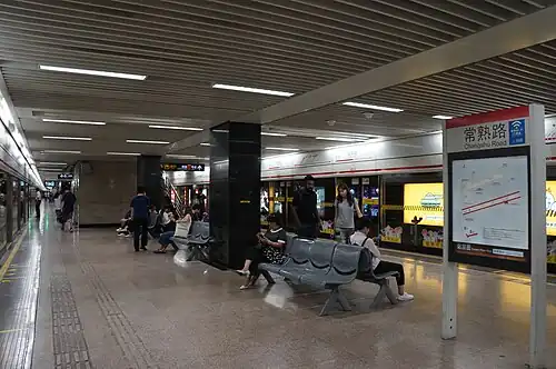 Changshu Road (Chinese: 常熟路; pinyin: Chángshú Lù) is an interchange station between lines 1 and 7 of the Shanghai Metro.[1] It is situated in Shanghai's Xuhui District, within the inner ring-road. Furthermore, it provides access to the shopping street Huaihai Road, Shanghai Conservatory of Music as well as the former colonial neighborhood previously called The French Concession.
