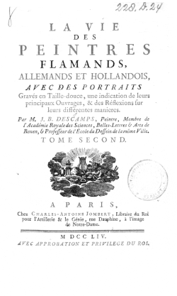 - Descamps, Jean-Baptiste. La Vie des Peintres Flamands, Allemands et Hollandois. Book I (1753) and book II (1754)