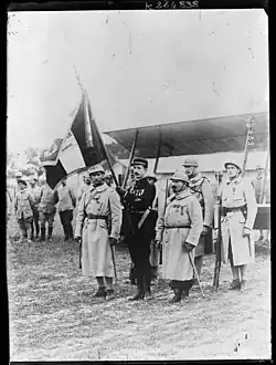 Sous Lieutenant observer of Escadrille N62; observer of the first order. On 10 February 1917, during the course of a long range mission, he was attacked by three enemy planes; he downed one of them and put the others to flight, not returning until his mission was completed. Has downed four enemy planes since July 1916. Already wounded in the course of the war and cited in orders four times.[1][2]