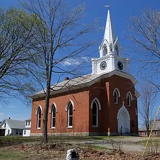 Notable buildings of the second half of the 19th century include the Italianate Town Hall (separately listed on the National Register), and St. Luke's Episcopal Church, a wood-frame Gothic Revival structure inspired by the works of Richard Upjohn. The Silsby Free Library was built 1893–94, funded by a bequest from Ithiel Silsby, and built in the Richardsonian Romanesque style to a design by Boston, Massachusetts, architect C. C. McAlpine.[2]