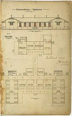 In December 1884, the Queensland Government called for tenders to erect a hospital in Charleville.[18] In March 1885 the contract was awarded to Richards and King for £2,265 10s.[19] In November 1885, a hospital ball was held in the new hospital building, suggesting it was completed and opened around that time.[20]