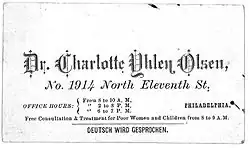 Charlotte Yhlen returned to the United States, where she worked as a physician at the Woman's Hospital of Philadelphia and then with her own practice. In 1874, she married the Norwegian engineer Tinius Olsen. She retired in 1889.
