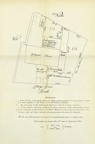 Following his death in 1625, the house passed to his brother Edward Chichester, 1st Viscount Chichester who in turn sold it to Sir Edward Smyth. It was Smyth who soon after leased the property to Edward Parry as his home.
