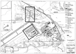 This meant that the aircraft would be positioned at 45 degrees in relation to an alert apron center-line, leading to a short taxiway and then onto the nearest runway(s). Two aircraft would be positioned on either side of the center-line, typically four deep on either side, sometimes with one additional aircraft being positioned directly aligned on the center-line farthest back.[3] The success of this formation also led to the adoption of the setup for the Boeing KC-97 Stratofreighter and KB-50 Superfortress aerial refueling aircraft.[1] As newer bomber and aircraft eventually entered the SAC inventory, the 'Christmas tree' aprons would be used by the B-47 Stratojet, B-52 Stratofortress, Convair B-58 Hustler, General Dynamics FB-111, Rockwell B-1 Lancer, Boeing KC-135 Stratotanker, and McDonnell Douglas KC-10 Extender aircraft.
