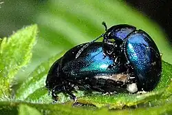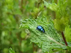 - ^ a b c d e "Blue mint beetle". rhs.org.uk. Retrieved 20 April 2017.