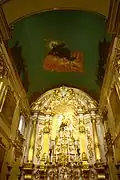 Inside, the transept area has an octagonal dome decorated with 18th century paintings and openings for abundant light, an altar dedicated to Saint Michael and another remarkable altarpiece dedicated to Immaculate Conception, made between 1736 and 1740 by the carver Luís Rodrigues Lisboa. The latter, an erudite carving in the Johannine style, has Atlantean angels supporting Solomonic columns, a novelty in São Paulo at the time. It also features other characteristics of the style, such as angels seated on volutes and a stepped throne under a sculptural ensemble of Saint Francis receiving the wounds, which was moved to the new main altarpiece, made in the Rococo style by José de Oliveira Fernandes in 1791, during the renovation at the end of the 18th century.[10][11]