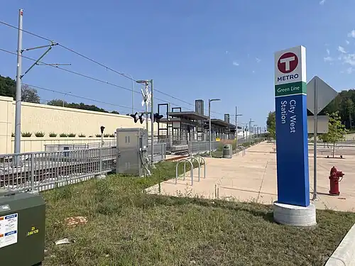 City West station is one of four light rail stations planned in Eden Prairie, Minnesota, on the Southwest LRT extension of the Green Line.[2] The City West Station will be near the corporate campus for Optum, and the station is positioned west of U.S. Route 212 and south of Minnesota State Highway 62.
