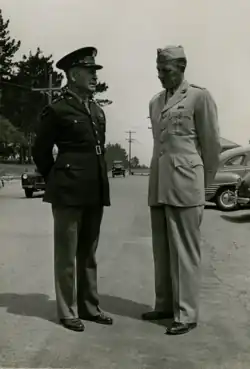 Captain Mercer stated that the Navy would be opposed to the immediate reception and quartering of any large number of Civil Affairs officers in Hawaii, because of the paucity of shipping space, subsistence and quarters. He indicated, however, that the Navy would give a sympathetic reception to the 'survey' committee which is to go to Hawaii from Civil Affairs Division and Captain Pence's office, particularly if the proposal is based upon a progressive transfer starting with a small number on or about 1 June and continuing through the ensuing period of CATS (Civil Affairs Training Schools). Colonel Boekel also reported that during the previous week he had a conference with Captain Moore of Lt. General Richardson's staff. Captain Moore indicated that there would be no difficulty in transferring the Planning Section and successive increments of CATS (Civil Affairs Training Schools) to Hawaii. Colonel Boekel went to Hawaii in May 1944 to confer directly with Admiral Chester W. Nimitz, Commander of the Pacific Fleet and Pacific Ocean Areas, and with Lt. General Richardson, Commanding General, United States Army Forces, Central Pacific Area concerning the site of the Holding and Staging Area about to be established. The decision arrived at as a result of this conference was that it would be impractical to locate the Holding and Staging Area in Hawaii.[13] The search for a site was then transferred to the west coast of continental United States. A committee from Washington, composed of Colonel Boekel, Colonel Harry Jones, Chief of the Personnel and Training Branch, Civil affairs Division, and Colonel H. E. Robison, of the Provost Marshal General's Office, visited several potential sites in California. They inspected Camp McQuaide at Santa Cruz; the Presidio of San Francisco; Camp Beale, at Sacramento; and Fort Ord, at Monterey. Their choice fell upon the last named site. The formal establishment of the holding and staging area is referred to in a Joint Chiefs of Staff document.