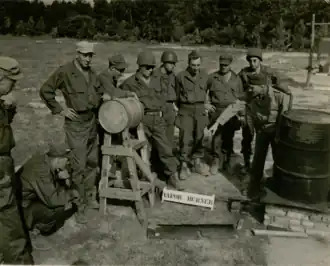 The planning section included plans on courses, field problems, panels, demonstrations; estimates of supply and transport needed to execute plans and the supervision of execution needed to complete the plans. The planning section also included the provision of administrative assistants to execute unit training programs as assigned, to revise programs in the light of operation experience, to complete staff work submitted by the Problem Planning Section, to submit original oral or written memoranda for the unit training problems and programs, to undertake the planning and execution of special programs required by higher authority on short notice and to check all Field and Military Government problems with provision headquarters and appropriate functional specialists.[18]