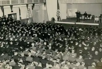 The mission of the Information and Indoctrination Branch was to disseminate general information which would be useful to Military Government officers in the field, provide speakers with Far Eastern experience instructional films, the organization of educational panels, to secure education pamphlets and similar materials, prepare and supervise a weekly "convocation" or assembly, to procure and project film for all divisions of CASA, and to install and operate a public address system for all divisions.[20]