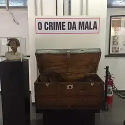 One of the main pieces in the collection is the original trunk used in the Suitcase Crime, a case that covered several Brazilian newspapers in 1928. On October 5, a trunk-shaped suitcase was found in the Port of Santos covered in blood with a mutilated female body inside; consequently, the case became known as the "Crime da Mala" (English: "Crime of the Suitcase").[8][10]