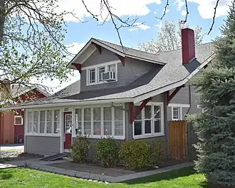 The Clara Hill House in Meridian, Idaho, is a 1+1⁄2-story Craftsman Bungalow constructed in 1919–20. The house features an enclosed porch facing North Main Street, with a front facing gabled dormer above and behind the porch. The lateral ridge beam extends beyond left and right dormered gables. First floor exterior walls are clad in weatherboard, and gable walls are covered in wood shingles. The house was added to the National Register of Historic Places in 2006.[2]