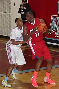 Alexander, who was also a highly regarded football player, did not play organized basketball until eighth grade.[2] Alexander played on Curie's 2010–11 varsity team as a freshman, but had little impact at first and sat out some games in December.[3] He missed the first ten games due to a heart murmur.[4] In late December, he started getting local attention as part of the reason Curie remained undefeated.[5] During the Chicago Public High School League (CPL) and Illinois High School Association (IHSA) playoffs, he contributed significant performances.[3] On March 9, 2011, Curie was eliminated from the IHSA playoffs in a Class 4A sectional semifinal by Lyons Township High School as freshman Alexander posted 9 points, 13 rebounds, and 2 blocks in a 66–64 loss.[6] His late-season contributions gave Curie an added dimension,[7] as the team finished with a 28–3 record.[2] Following his freshman season, Alexander began to be recognized by local evaluators as a potential top national recruit.[8] After Jabari Parker and Jahlil Okafor, Alexander was already considered the best Chicago area basketball prospect.[3] He earned Red-Central all-conference recognition.[9]