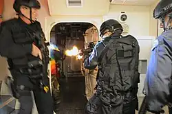Armies that often engage in urban warfare operations may train most of their infantry in basic CQB doctrine as it relates to common tasks such as building entry, clearing a room, and using different types of grenades.[7]